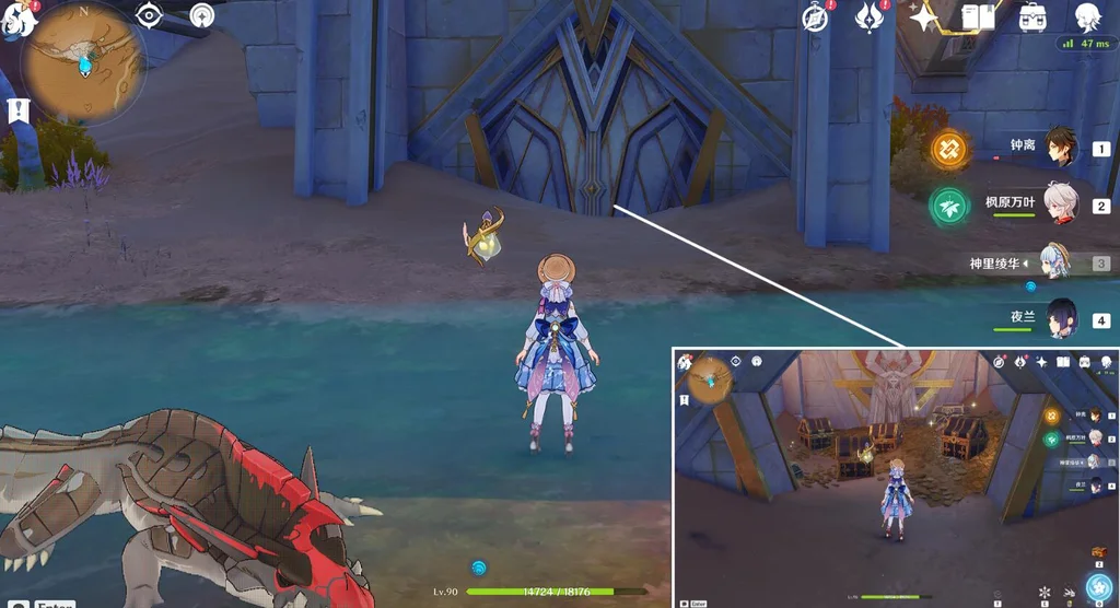 3、最后来到营地的底层,用钥匙开启大门,即可获得四个珍贵宝箱啦(各5w摩拉)