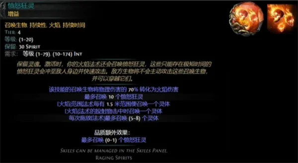 1、愤怒狂灵:火焰法术会有概率召唤狂灵。