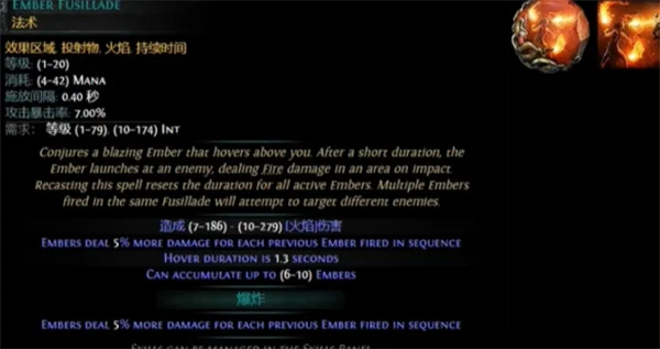 1、余烬齐射+高阶多重投射+几率点燃(产生愤怒狂灵)