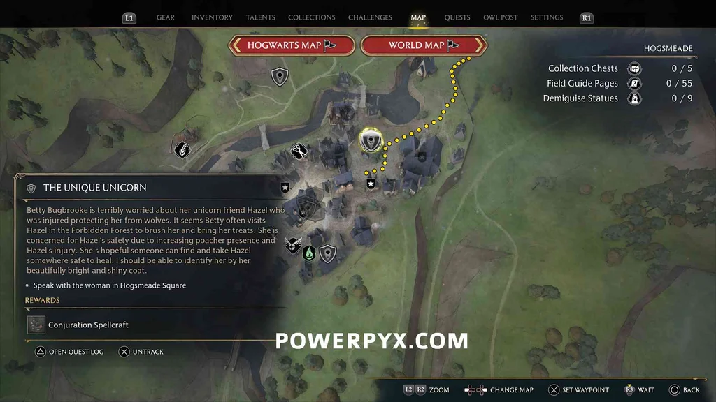 来自支线任务:霍格莫德中独特的独角兽。在这个支线任务之后,一个野兽巢穴出现在霍格莫德以北,在那里可以抓住它。