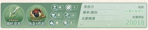 当艾尔海森使用专武【裁叶萃光】带【饰金2+乐团2】时,毕业面板为: