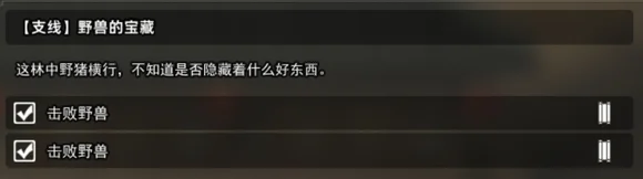 进野猪林走到最里,左下方的位置有个红色宝箱,走过去会遇见隐形的狼。先打掉宝箱前这只,另外一只在旁边的树桩位置。两只全打掉任务完成。