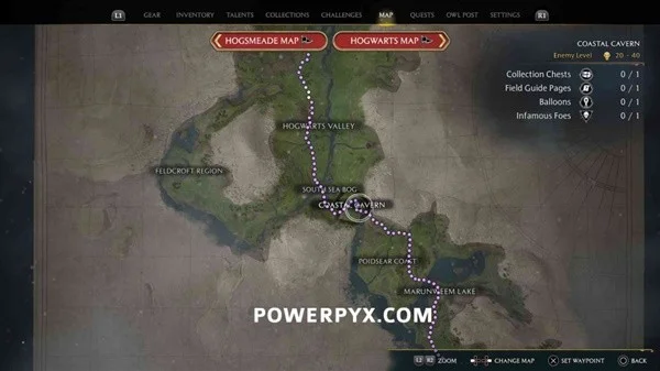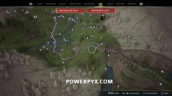 你可以从一开始就去那里,只要你可以离开霍格沃茨城堡,自己自由漫游。最简单的选择是简单地在地图的南部边缘放置一个航点标记并跟随紫色点。这里重要的部分是你必须步行,如果你乘坐扫帚或坐骑飞行,你不会在HUD小地图上看到紫色的航点标记,并且可能走错了路。