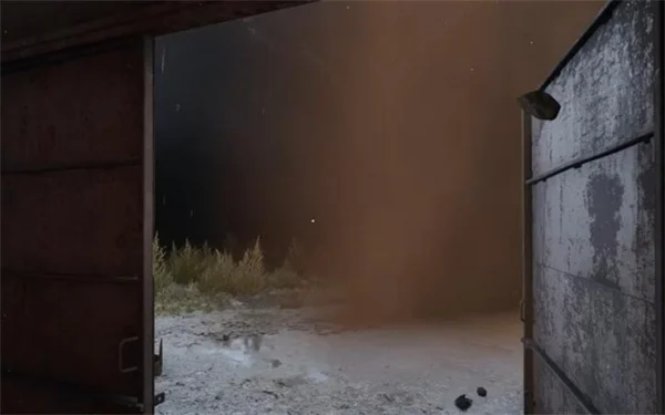 5、在库房门口等待龙卷风靠近,靠近之后快速地钻进去。