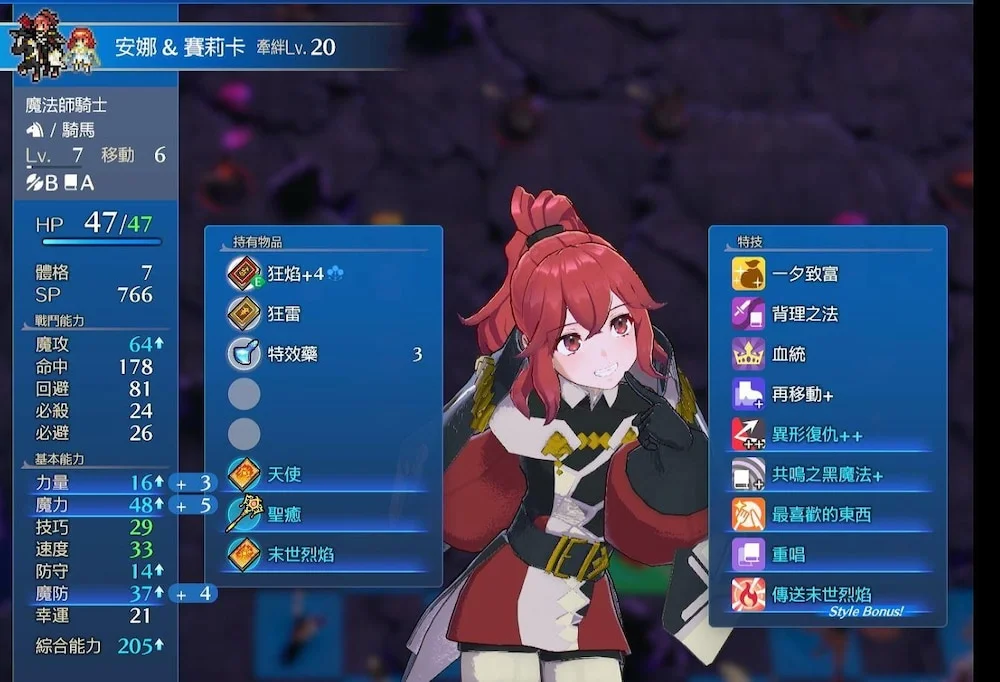 魔法师骑士可以兼顾安娜的高速度成长 稳定追击敌人 被动还+3速度