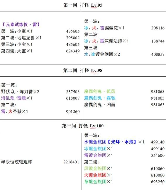 1、3.4版本深渊的怪物分布以及血量如下图所示: