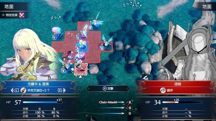而刀剑将领与小偷其实也可以换成格里芬骑士,我是因为衣服美观的塬因才保留两个刀剑将领。主要就是把迴避撑高,然后因为委任AI不会帮你换武器,所以尽量选择打两格的武器,而又要应付重装的关係所以法系武器也比较好用,物理伤害没克制打重甲有多悲剧呢?就是下面这张图: