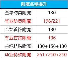 如果想提升名望可以考虑将金绿/刮刮乐级别的附魔换成毕业级别的附魔。