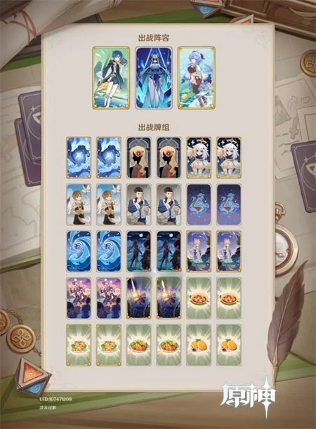 1.这套牌打法很简单,也很公式化,只要保证开局行秋能打出两发技能+拍下大派蒙,剩下的交给甘雨射箭就行了。