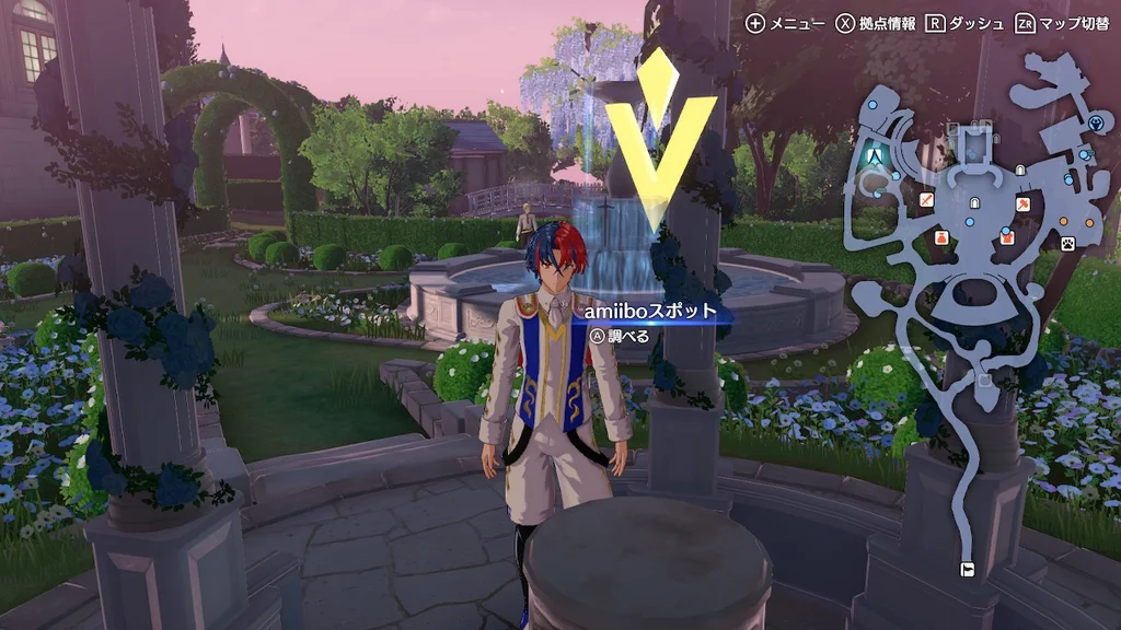 ①扫瞄amiibo要在据点的「amiiboスポット」(amiibo spot)进行,地点在树果园旁。