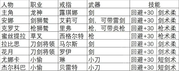 里面大部分人应该本来就有练所以实际要刷的不多,特点就是速度成长极高,职业速度上限也高,搭配的戒指特点就是武器要单一,防止ai乱换武器导致剑术柔枪术柔失效,为了保证技能发动其实不戴戒指也是可以,但是刷到后面素材多了戒指武器强化起来会比自己的武器要强的多,所以后面还是建议带上,两个小偷带的单纯的就是因为加速度,推荐人物也不需要全练,实际上只练几个剑也是完全可以,上的人少只是最后通关时间有差距,并不会增加翻车的几率。
