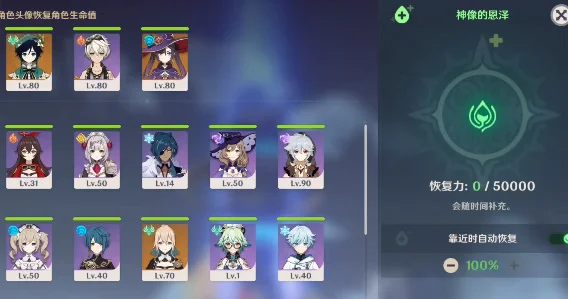 3、每一个七天神像的恢复力是有上限的,我们需要切换恢复的角色。