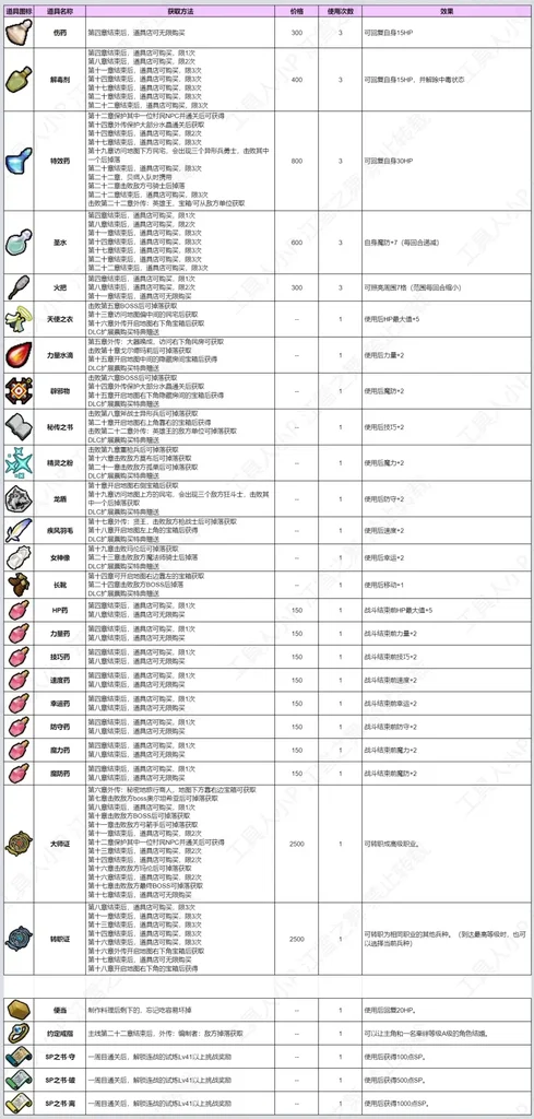 火焰纹章Engage全道具查询表。不少玩家可能还不太清楚游戏中的各个道具如何获取到,下面带来具体的介绍,供各位玩家们参考。