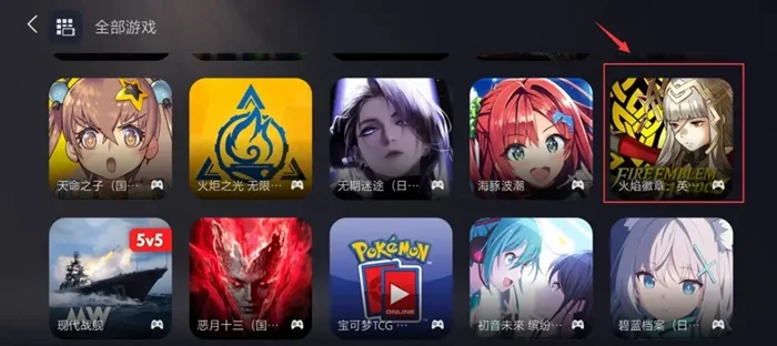 进入后往下划,找到我们需要的《火焰纹章 英雄》的游戏图标点进去