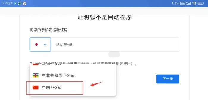 经过一些填表注册步骤,最后则需要通过手机号进行验证码验证,此步骤需要注意的是该注册默认区号为日本地区,需要手动点开下拉框滑倒最下面改成中国(+86)的区号才能正常收到手机短信验证码,之后填入验证码即可注册完成。