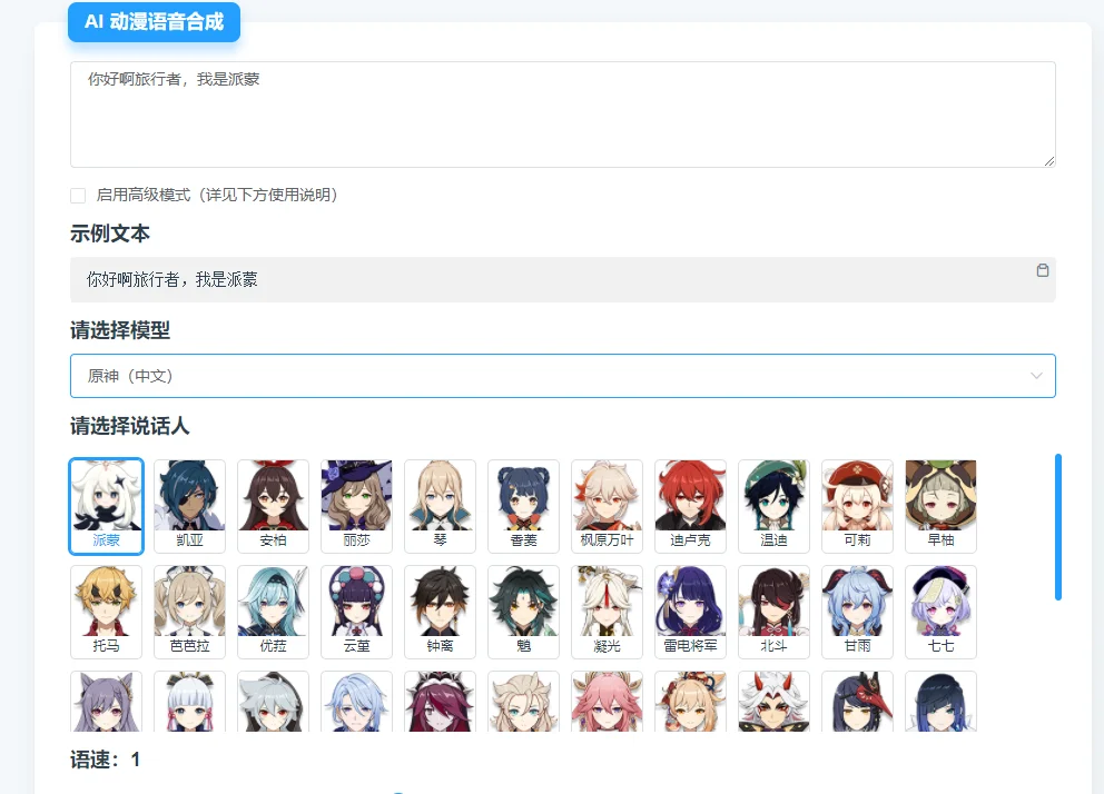 上方链接就是原神语音合成网站入口,玩家可以在该网站进行原神各角色的动漫语音合成