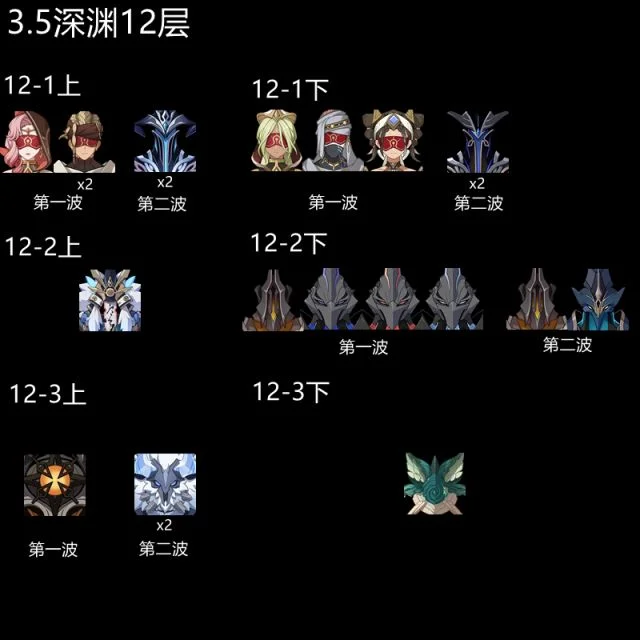 原神3.5深渊怪物阵容可以见上图,不排除后续更改的可能