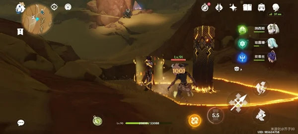 下图此处有个摩拉堆,拾取后会掉下去,可以离远一点,掉下去也可以顺着风场飞上来,问题不大