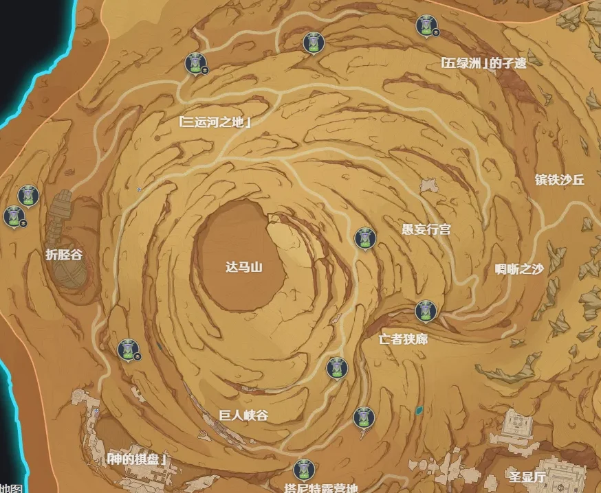 上图就是原神3.4千壑沙地中各个元素方碑的位置标记,想要找到元素方碑的玩家可以参考上图,希望对大家有所帮助。