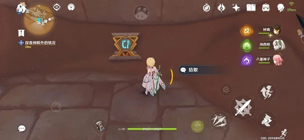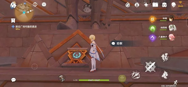 首先是元能方尖碑的地址,位于世界任务比露琪丝哀歌与婕德两人一同探索的第一个神殿大门前。如下图所示