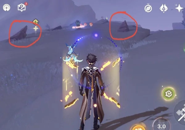 可以看到一个风方碑旁边有锥形的石头,开好盾走到锥形石头旁等待。