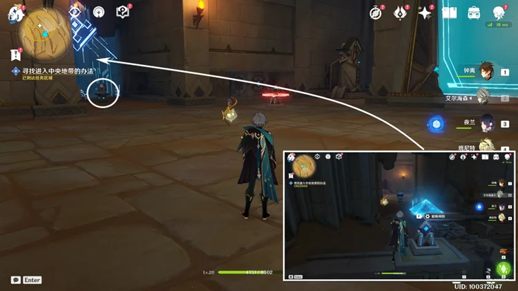 7,启动遗迹前的阀栓(不是标记那个),跟随仙灵进入密室,旋转角落的元件(右手边),离开密室