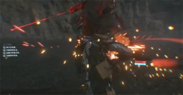 剧情结束后,红色武士会举到起手,这里看他刀的走向是往下砍,我们就直接横砍打断他。