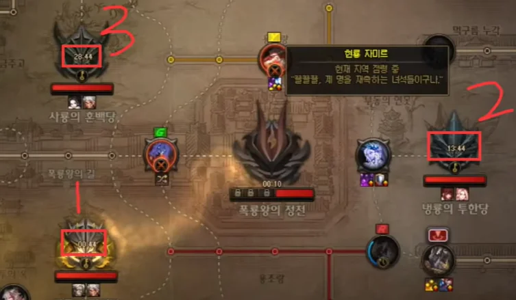 中路守门怪开启之后三龙随机复活一个之后的有倒计时苏醒,和巴卡尔一样,如果三龙苏醒之后房间没人也会快速增长狂暴值