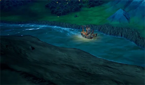 手持爱的回忆,你可以返回到奥利维亚岬,向着之前被两座巨大雕像挡住的路径航行。这次,爱的回忆会发光,召唤出奥利维亚的灵魂,将她与她的恋人团聚,并移除两座雕像之间的障碍。继续航行吧。