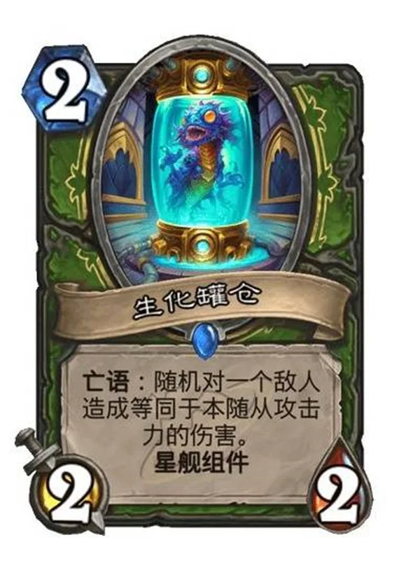 面对慢速找生化罐仓,能复制的牌非常多,不用担心抽不到,但是生化罐仓只有两张。当手上有生化罐仓的时候找复制牌的优先顺序是封面艺人>大叫巨鹦>食肉格块>游侠斥候,当然,大主教奈丽优先级排在这些之前,因为有了奈丽就等于这些全都有了。面对快攻的时候要优先找解牌,复制牌都用不出去,要找的组件也变成了叠甲组件。面对大法术法的时候不要下生化罐仓,因为我见到的每一个大法术法都捏着一张混荡回响等我星舰发射,仿佛只要能复制个星舰玩玩游戏输赢都不重要了,可以先用埃索达发射一个只能叠甲的星舰逼出混荡回响,拿到1费叠甲组件后前期没机会下的复制牌就有了非常大的操作空间。