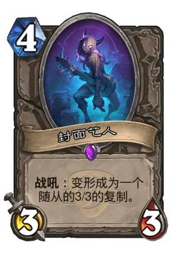 在前期大量复制星舰组件,面对慢速卡组只复制生化罐仓增加伤害,面对速度快的卡组就要考虑复制叠甲组件,卡组带了两张封面艺人,却只带了一张食肉格块,是因为这两个在实战中基本都只能复制一张,而封面艺人有一个强大的隐藏特性,当它变形成一个无战吼的随从时,是不会消耗地标的减费效果的,这让封面艺人拥有巨大的费用优势。而大叫巨鹦则更加灵活,一般可以一次复制两张以上。