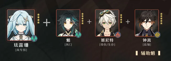 说明:班尼特可换阿贝多或夜兰。珐露珊和班尼特双拐增加魈输出,6命珐露珊还可以给魈前台产球,缓解充能压力。班尼特和珐露珊的加成基本没有稀释。