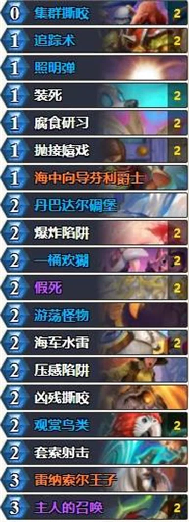 在策略类卡牌游戏炉石传说中,玩家有许多不同的卡组可以选择,部分玩家不知道狂野40水雷蛋猎卡组怎么搭配,下面为大家带来 bilibili 作者“炉石东少”分享的狂野40水雷蛋猎卡组搭配,有需要的玩家可以参考。