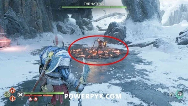 走下泰尔神殿桥左侧的楼梯(在阿斯加德遭遇遗迹后面),路径的尽头是裂缝,你在故事的第一个任务中与托尔战斗。