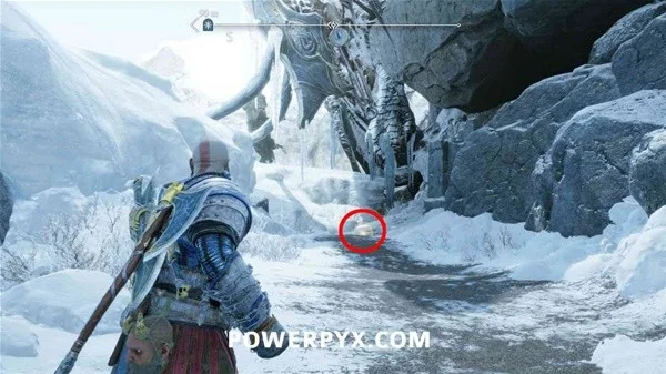 在黄色发光的冰块后面,必须用长矛摧毁它。宝藏在地上发出金色的光芒。要生成宝藏,您必须首先收集藏宝图,它来自在斯瓦尔塔夫海姆>苹果核心发现的传说卷轴收藏品。参见苹果核心收藏品:#1 传说(藏宝图 - 达吉斯特的消亡)。在Applecore中进行100%完成时,您将自动获得它。之后回溯到这里,宝藏就会在地面上发出金色的光芒。