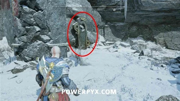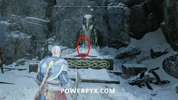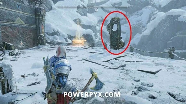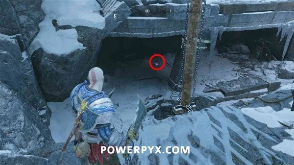 在渡鸦之后,使用第 4 个抓钩摆动,然后立即右转并回头看你来的方向,爬下这里的岩石,看到抓钩下方一层的神器。