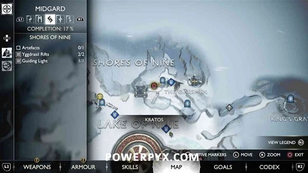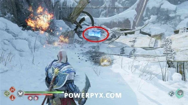 从神器中沿着九湖的北部边缘乘坐雪橇。在左边,您可以跳过木梁,然后举起一块石头,这将带您进入适当的“九海岸”区域。现在沿着左边的小路蹲下,穿过残骸,然后右转看到藤蔓。用你的混沌之刃燃烧藤蔓,露出后面的传说标记。这在该地区的完工概况中被视为“指引之光”。这是《支线:指引之光》的一部分。
