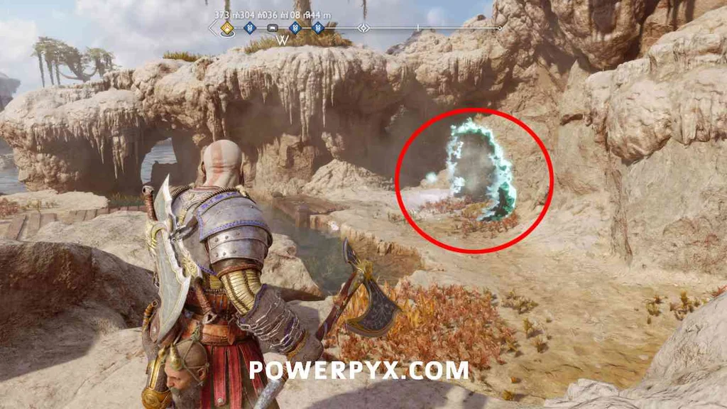 从诺尼尔的胸部爬上间歇泉右侧的脚手架。然后顺着绳子滑下来。在您降落的区域,通过持有:square:与大型绿色门户互动。然后击败一波又一波的敌人。这在第一次访问时不可用,Hel-Tears 在故事任务 12:团聚期间可用,您必须稍后(或故事结束后)回来。