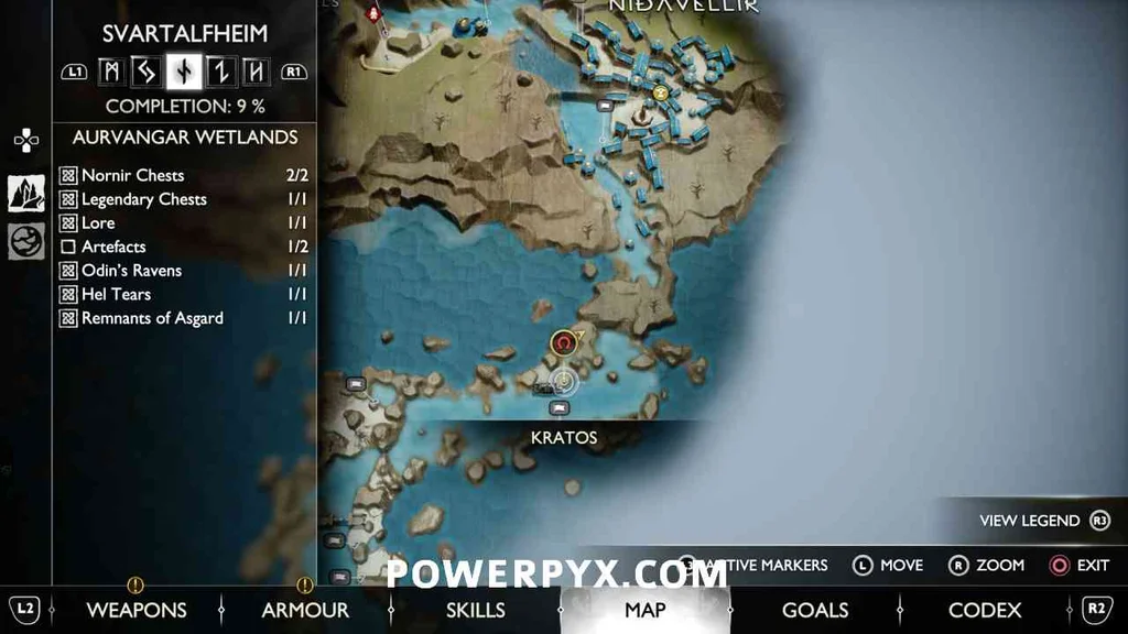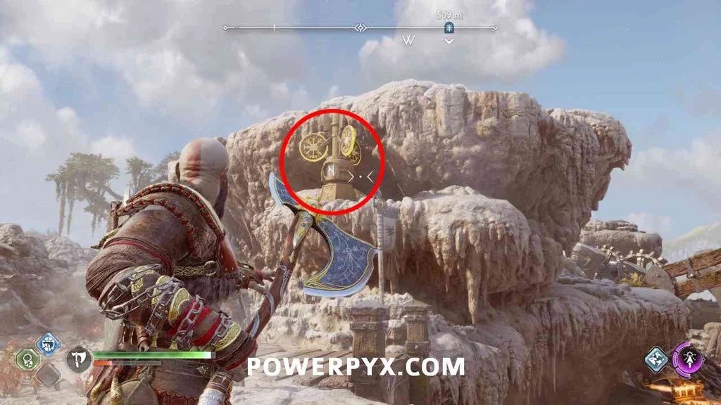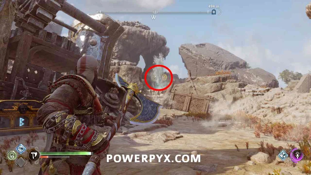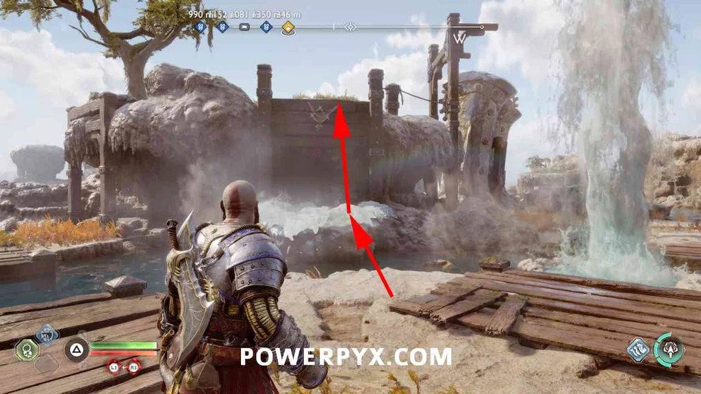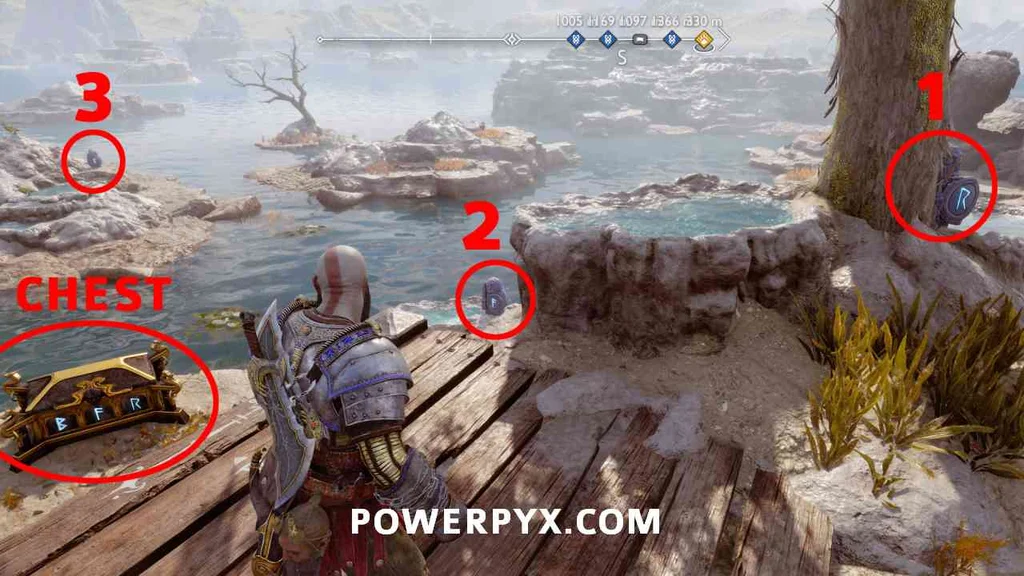 在与阿斯加德遗迹相同的区域,有一个诺尼尔宝箱。您必须在此区域旋转 3 个柱子,直到它们显示与胸封相同的字形。第一个是在间歇泉后面的胸部右侧,只需继续击中它,直到胸部的字形不再发出蓝色光。第二个,抓住胸部左侧的路径,然后立即向右转,在岩石上看到它。对于第三个,下降到该区域后面的底部,在岩石上看到它(旁边是一个红色的残余箱子)。