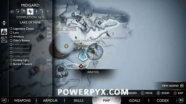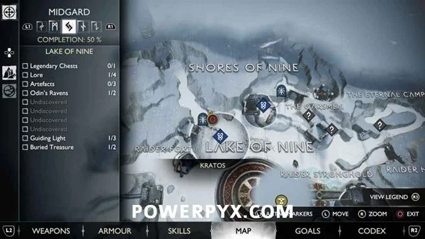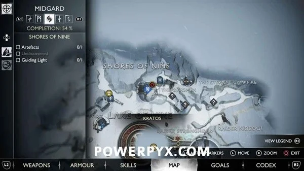 在整个米德加德,都有提尔雕像的残骸遗址。三个在提尔神庙的北边,一个在它的东边。这些站点中的每一个都会有一个符文阅读,以及一个挖掘点,可以给你一块指导光盔甲套装。