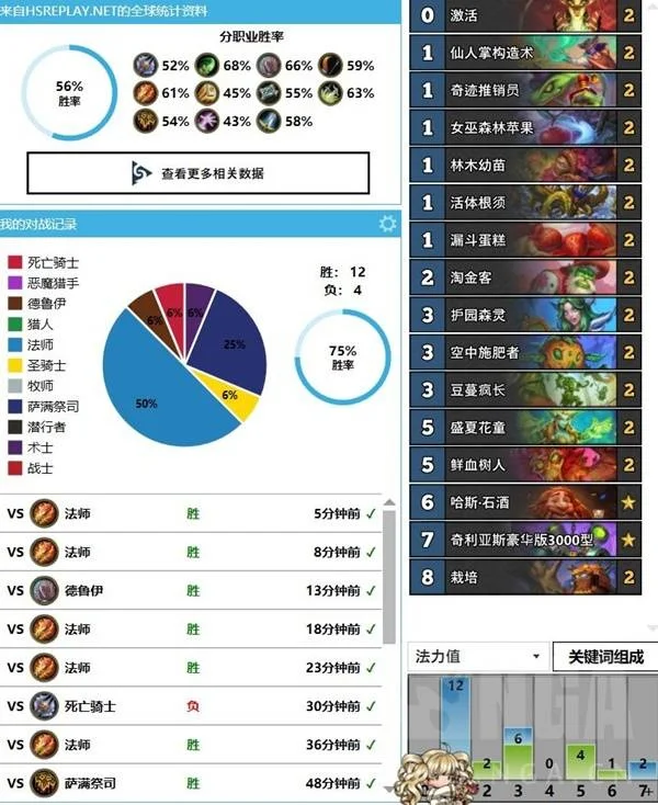 后面听到群友说玩树人德9连胜了,我就抄来试试,结果3小时就上传了,12胜4负,打法师82开,只有你手不顺他超顺才会输,当然可能卡组太low了法师都没啥应对。