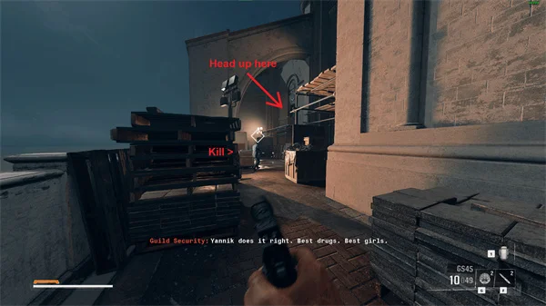 一旦你爬上去在游艇上狙击了扬尼克,就从钟楼跳到下面的水中。然后沿着我们去钟楼的同一条路线回到起点。