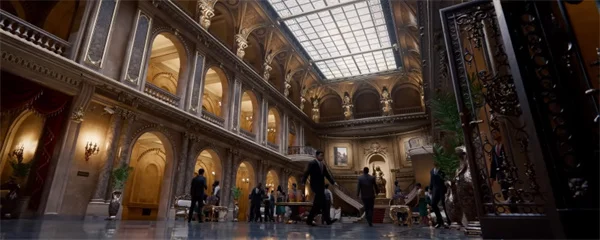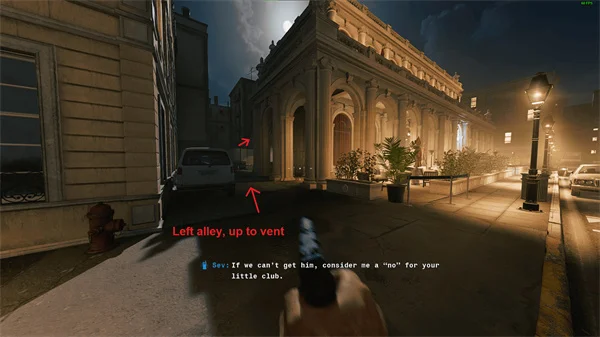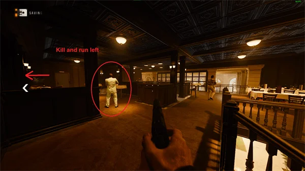 在短暂的过场之后,从左边的小巷进入餐厅,然后在通风口左转,把洗手间的保安赶走。