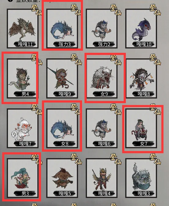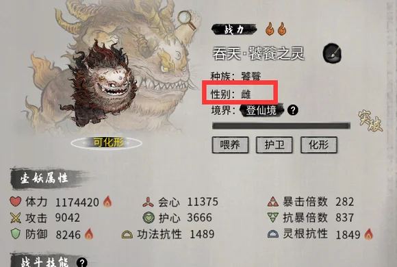 3.环狗(只能是雄性)、褚犍(只能是雄性)、类(可以是雌性)、穷奇(可以是雌性)、九尾狐(只能是雌性)、饕餮(可以是雌性)、鸓(可以是雌性)、鬿雀(可以是雌性)