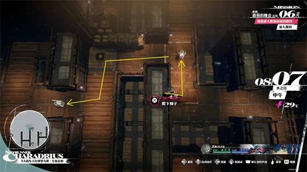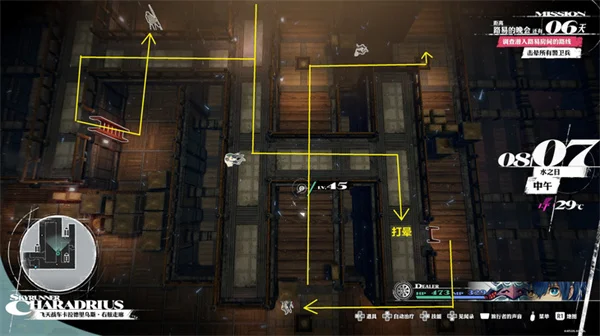 跑到出口附近,从楼梯下去,后半部分按照下图黄线,先打晕一个士兵后与灰羽汇合。