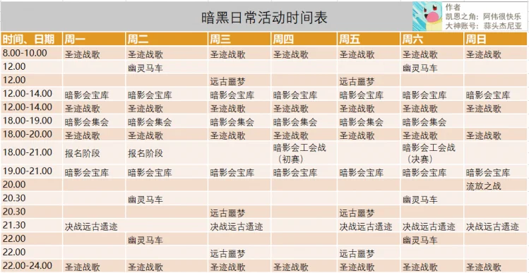 暗黑破坏神不朽日常活动查询表。本文为大家带来的是游戏中的日常活动时间自查表,玩家们可以根据活动具体时间来合理规划,感兴趣的玩家们赶紧来看看吧。