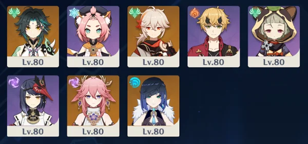 根据整备机制,本关我们直接分配为4+4的队伍配置,其中主要输出角色分别有魈,八重神子,副C有夜兰,万叶,九条沙罗等,将主C划分为两队,再将其他角色分配至两队中,即可完成队伍配置。