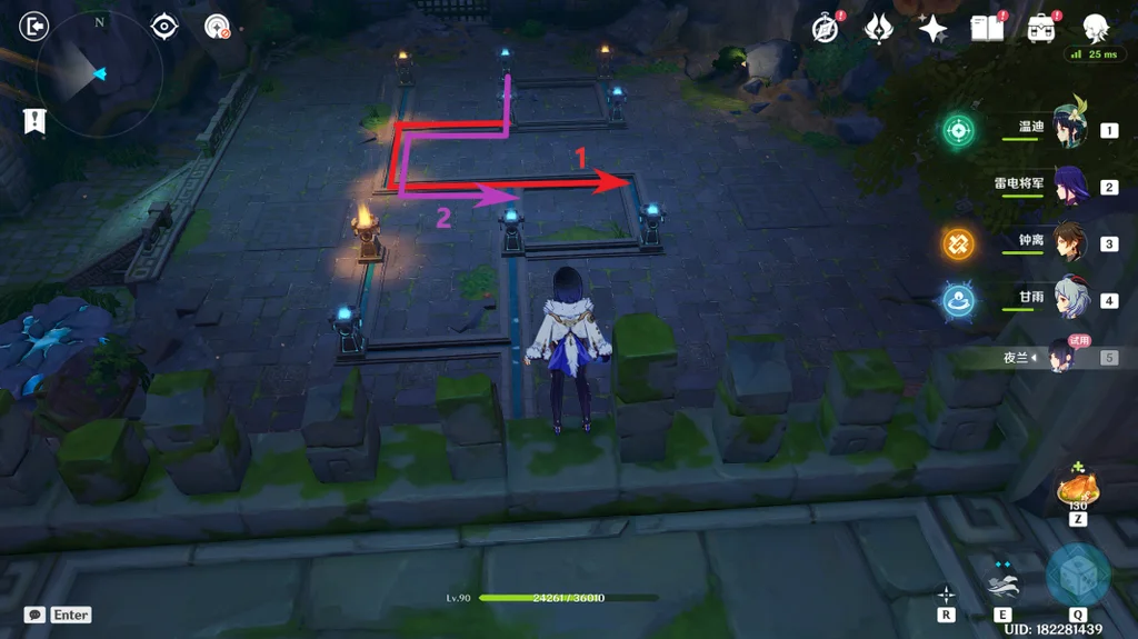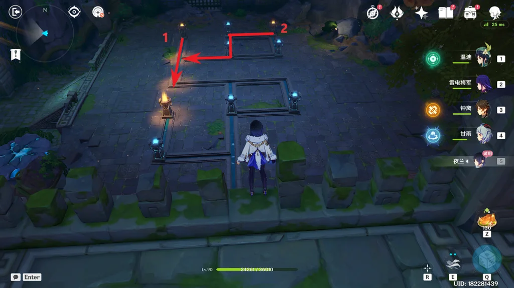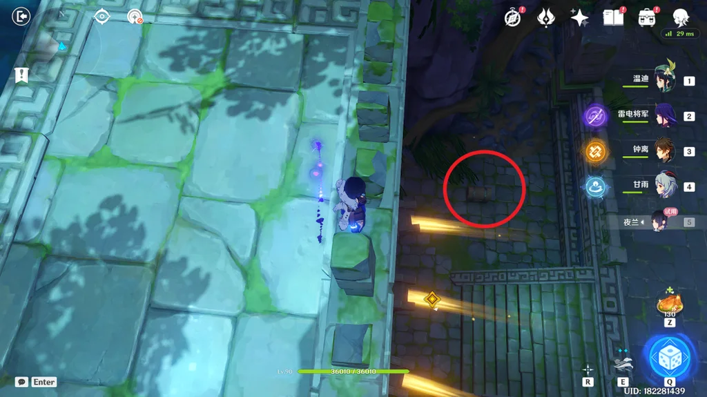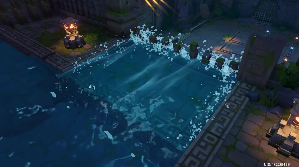 6,返回到两个石柱处,激活机关,这样下面的水位就会下降了
