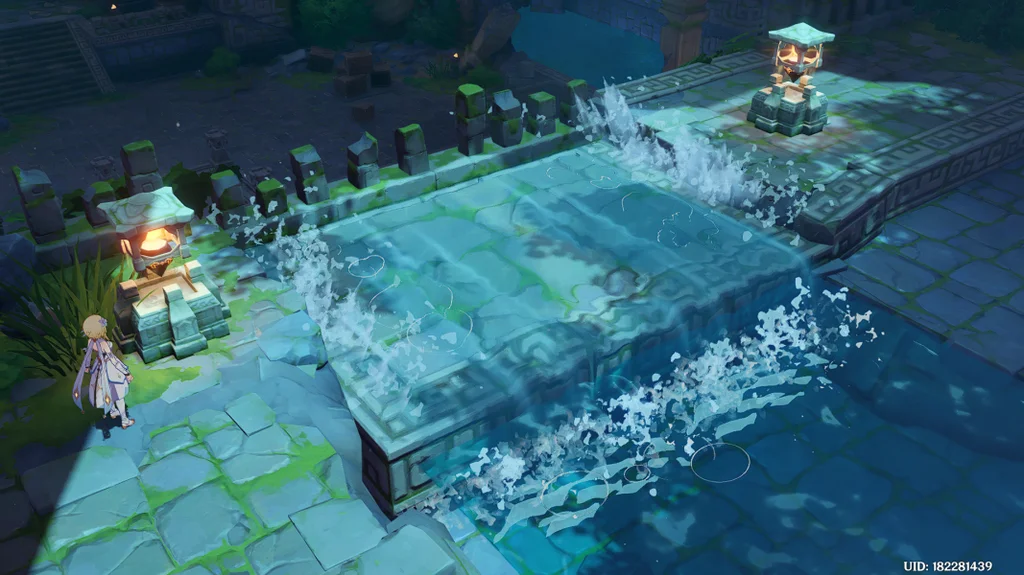6,返回到两个石柱处,激活机关,这样下面的水位就会下降了