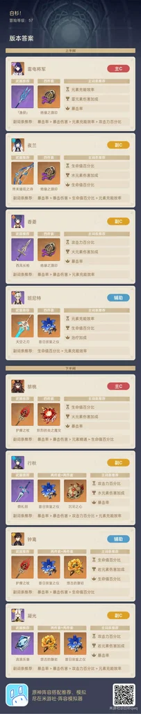 1.个人胡桃没有暴击头,拿的是决斗枪,保证暴击爆伤比1:2即可